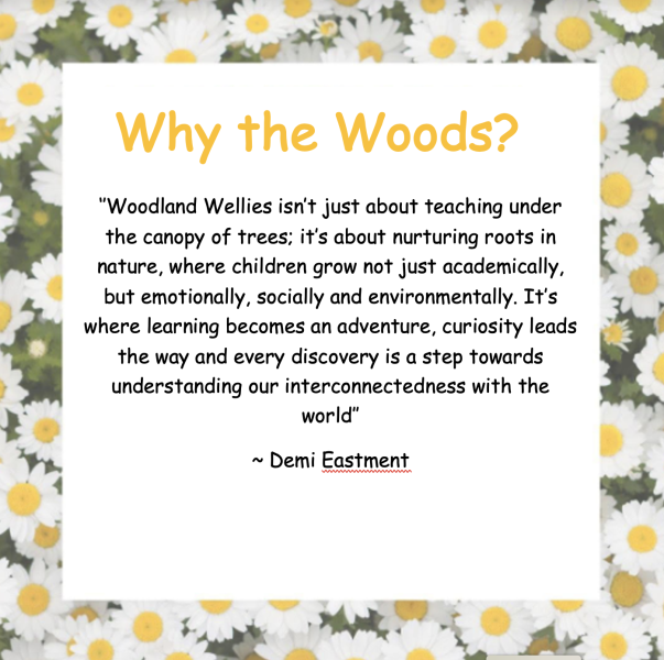 This is an outdoor education delivery model in which students visit natural spaces to learn personal, social and technical skills. The woodland environment will also be used to give children first hand, kinaesthetic experiences linked to subjects from across the curriculum.